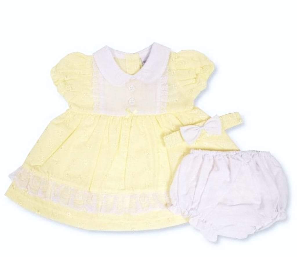 Nursery Time Lemon and White Broderie Anglaise Frilled Dress