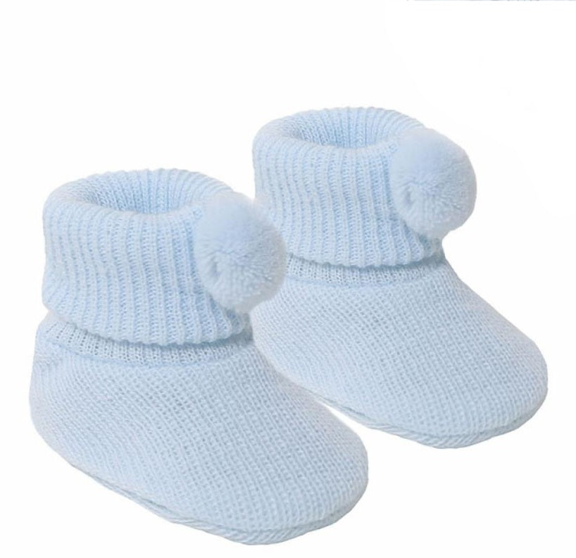 Soft Touch Sky Blue Knitted Pom Pom Booties