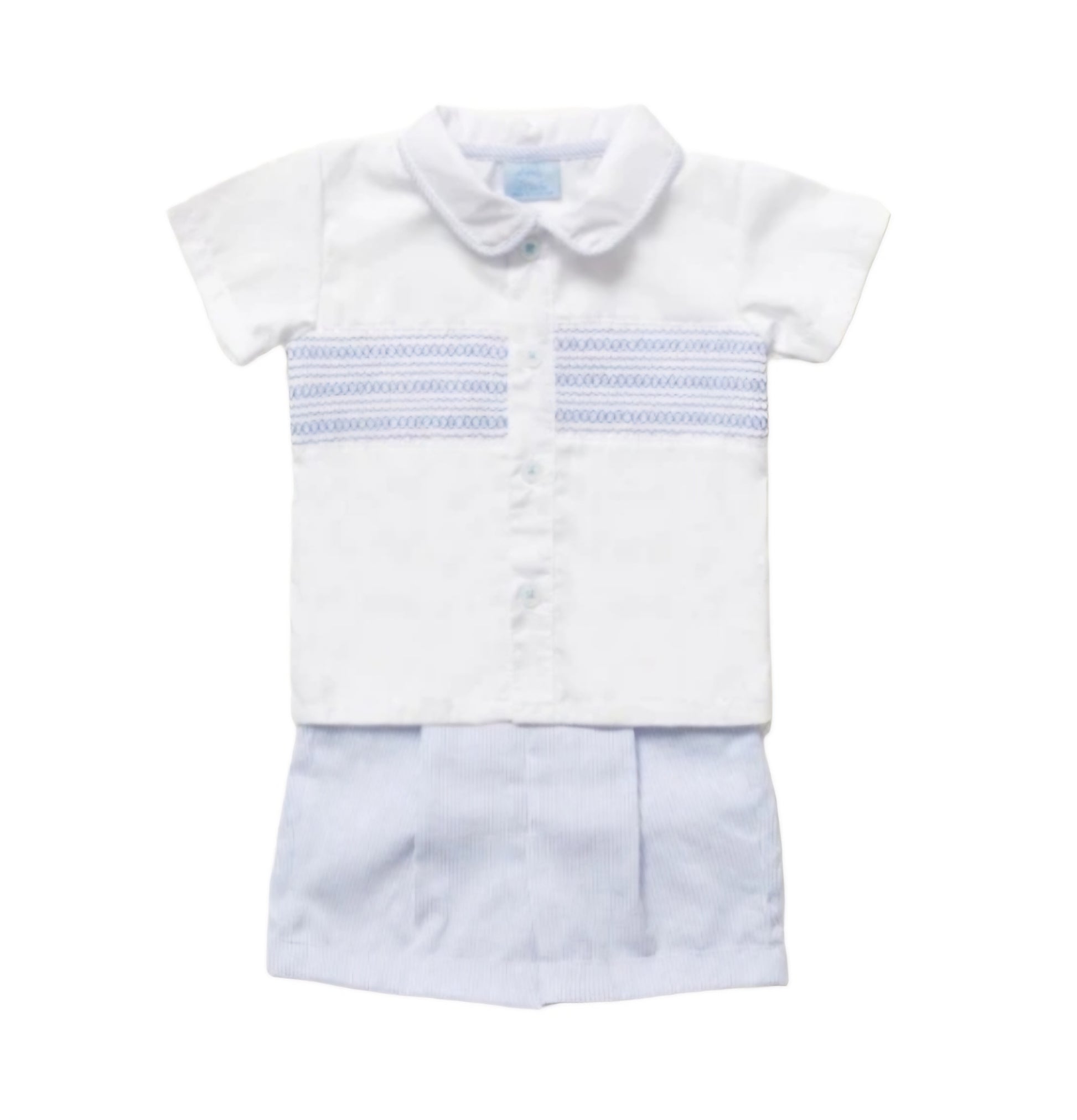 Rock a Bye Baby Blue Smocked Striped Short Set