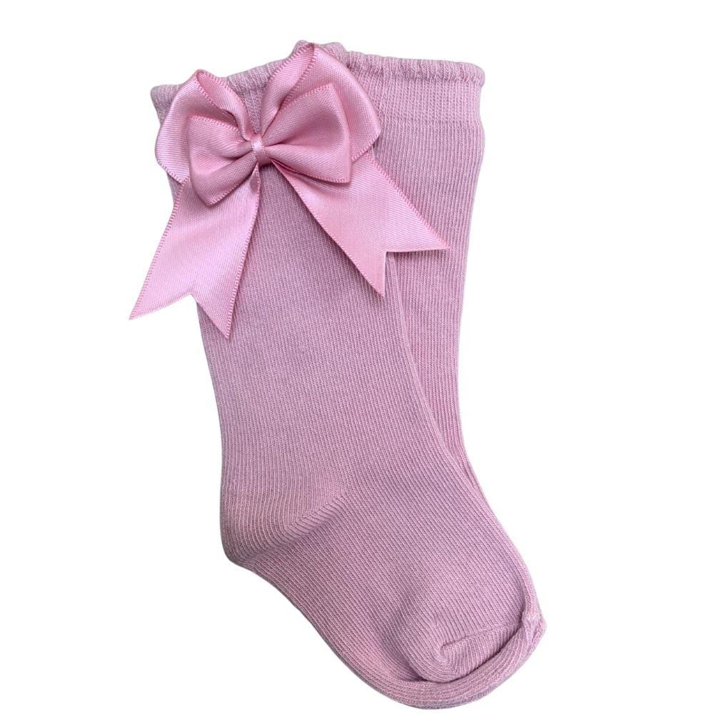 Tambino Knee High Double Bow Socks - Dusky Pink