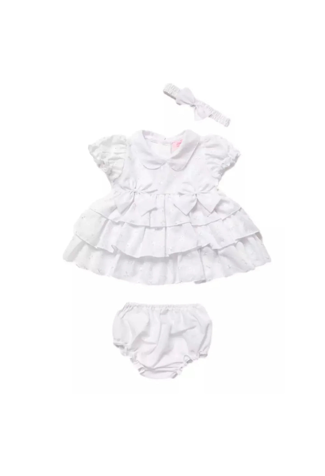 Rock a Bye Baby Girls White Broderie Anglaise Dress with Bows