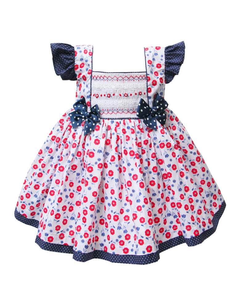 Pretty Originals Red & Navy Floral Print Dress & Headband